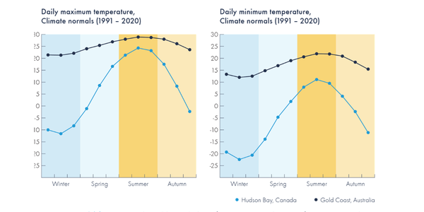 Polar bears are adapted to cold Arctic environments. Sea World promotes Polar Bear Shores as a replica of an “Arctic summer” based on Canada’s Hudson Bay, yet climate data show the Gold Coast is consistently warmer across the year than Hudson Bay. Peer-reviewed research has linked temperatures above 20°C in captive polar bears to increased cortisol, a physiological stress marker.