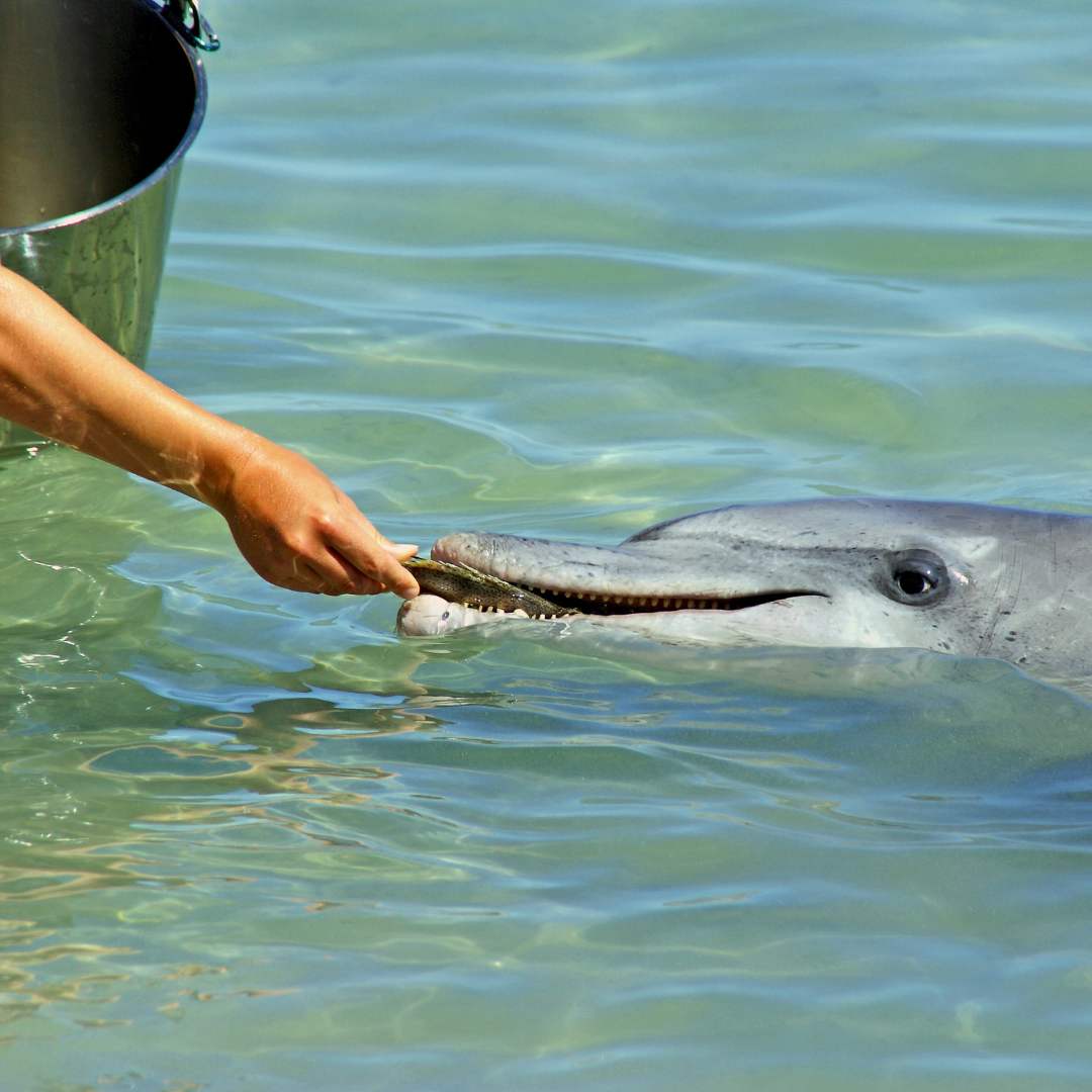 At Monkey Mia, feeding wild dolphins began in the 1960s but it wasn’t until 20 years later researchers discovered calves of these dolphins were dying. 90% of the calves had failed to reach adulthood.